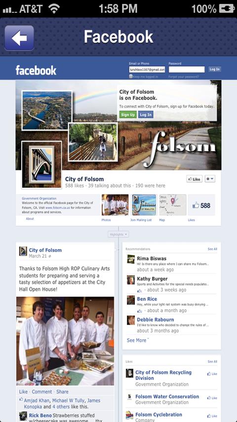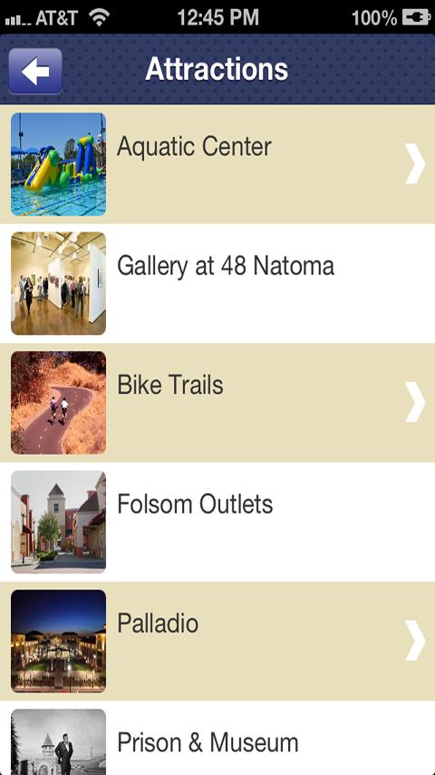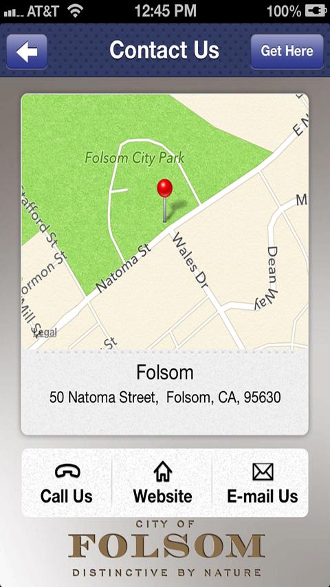 Incorporated in 1946, Folsom is conveniently located 20 miles east of California's state capitol in Sacramento and about halfway between San Francisco and Lake Tahoe. Because of its location, Folsom is considered a gateway to the Sierra Mountains. Originally a gold mining town, and the site of the first passenger rail terminal west of the Rockies, Folsom is steeped in a rich and colorful history. Our app provides a new way for residents and visitors to connect with all the City of Folsom has to offer. Here is a partial list of features you will find in our app:
